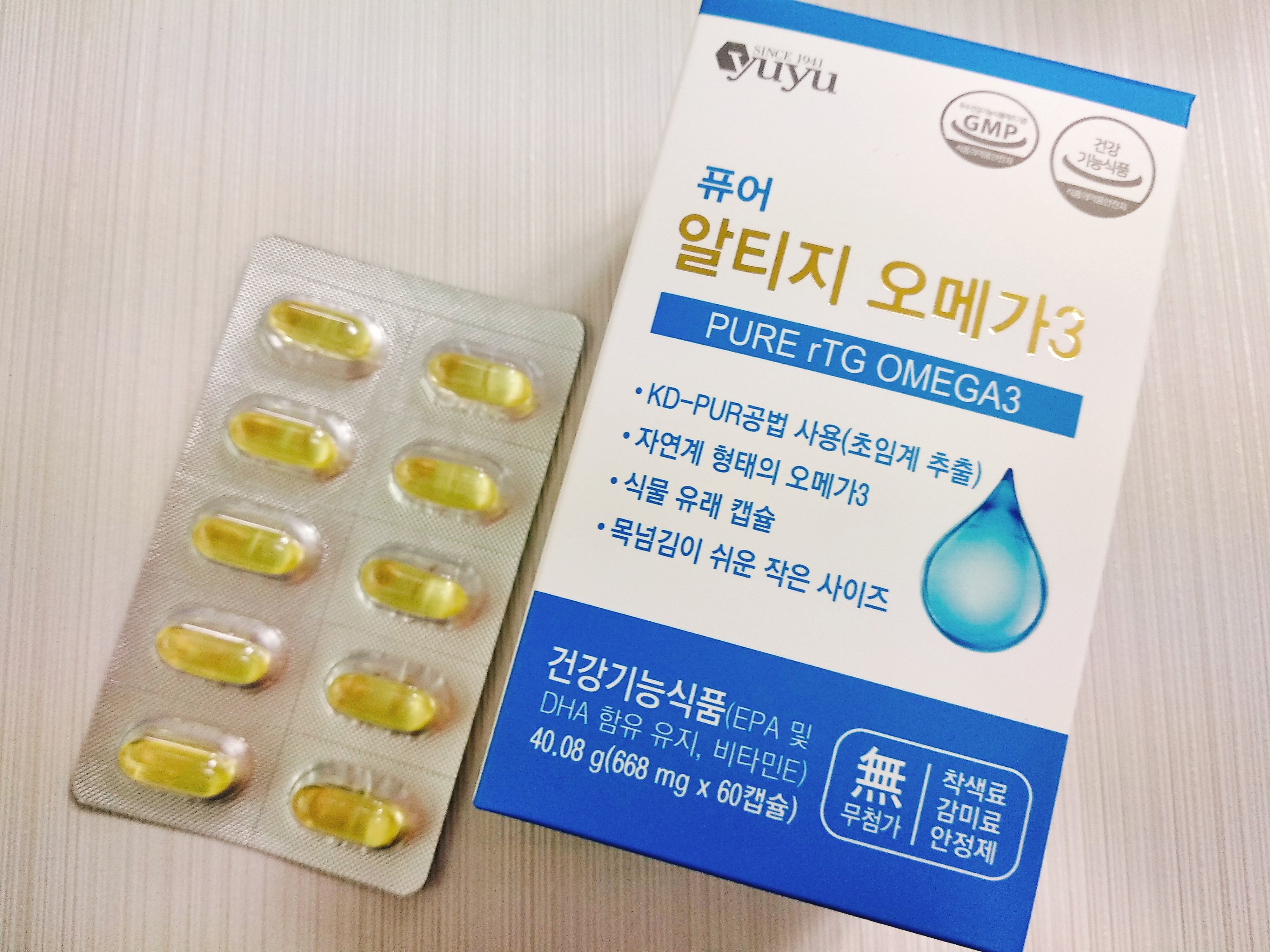 유유제약의 퓨어 알티지 오메가3랍니다!