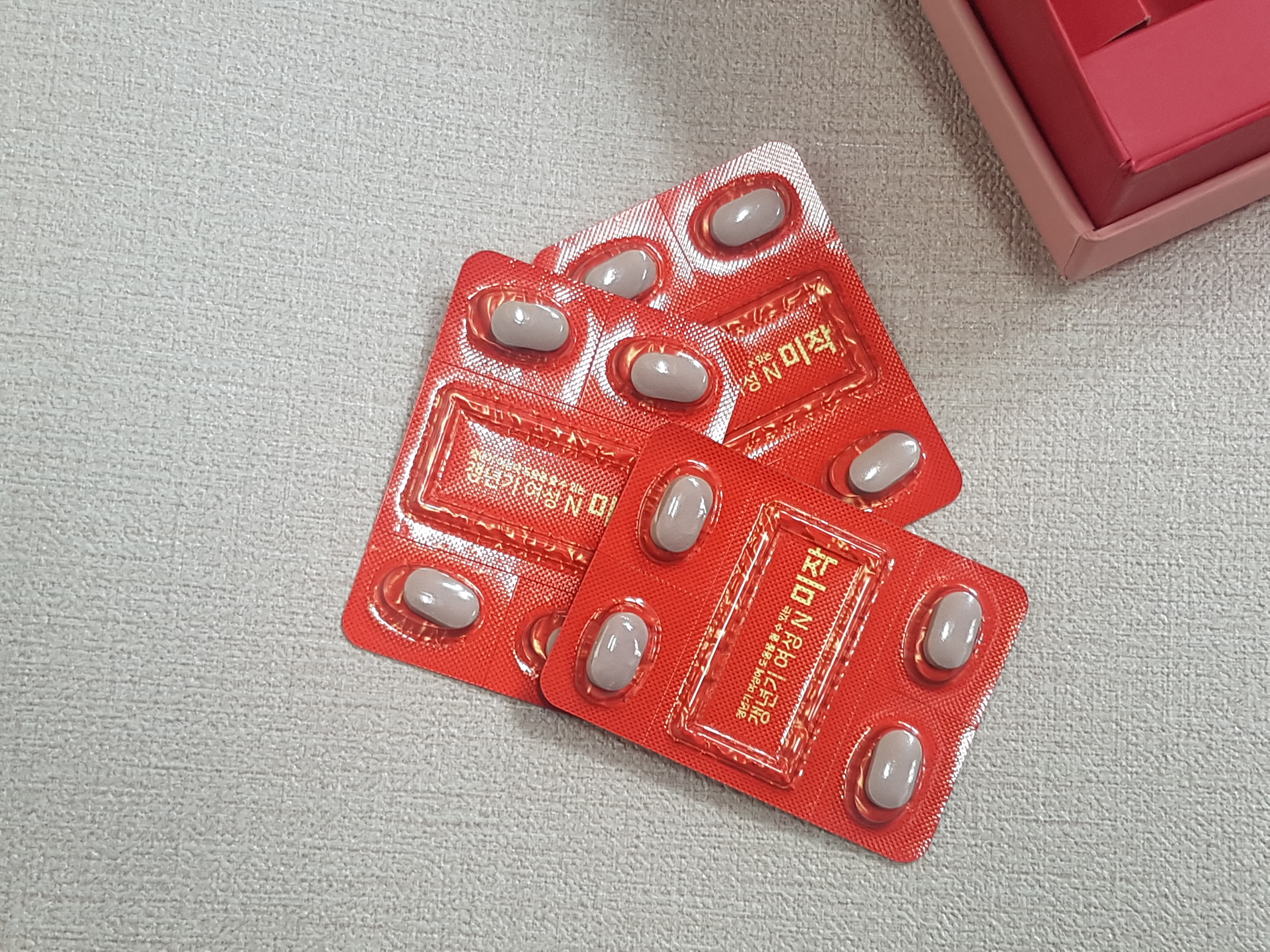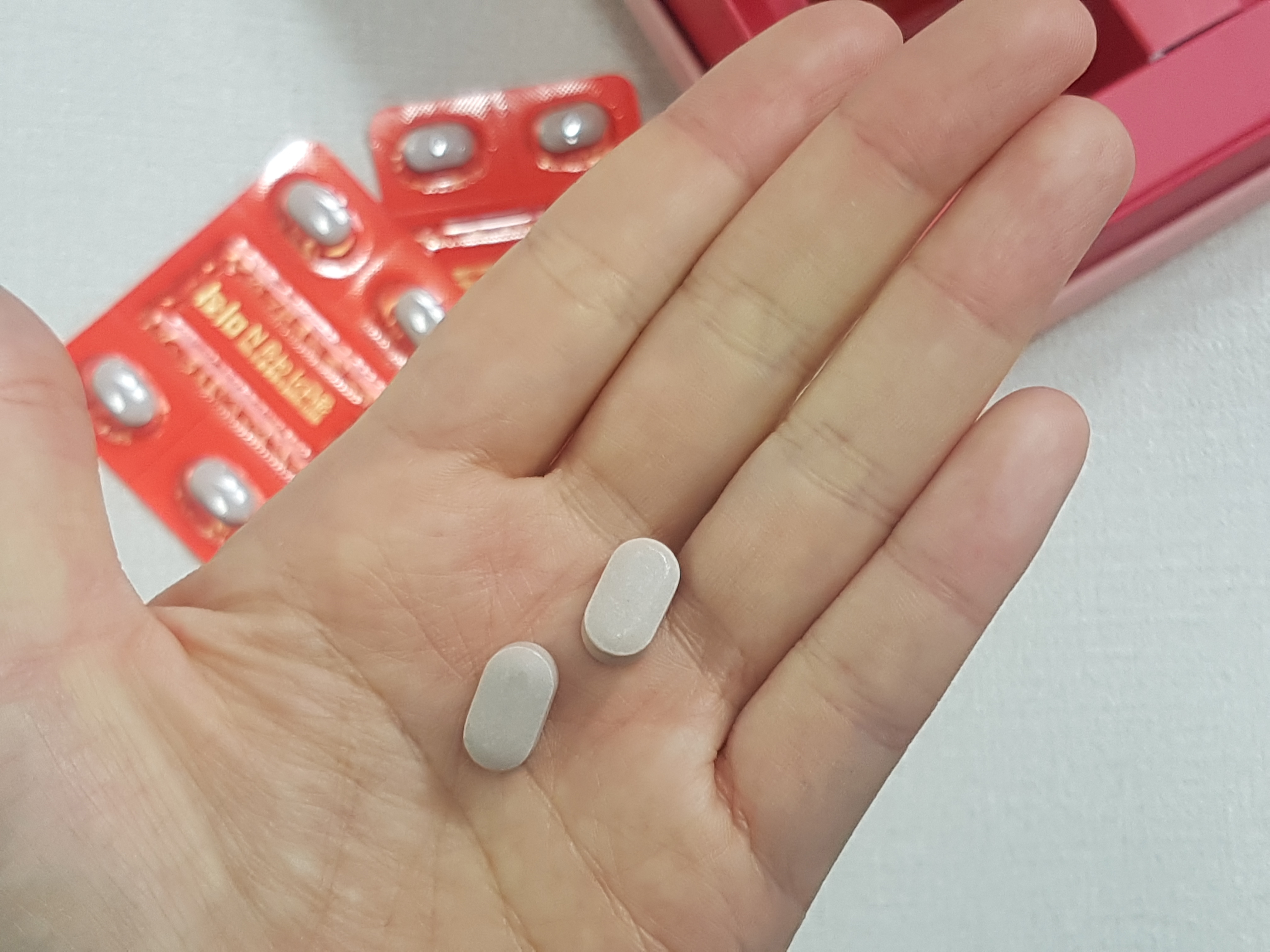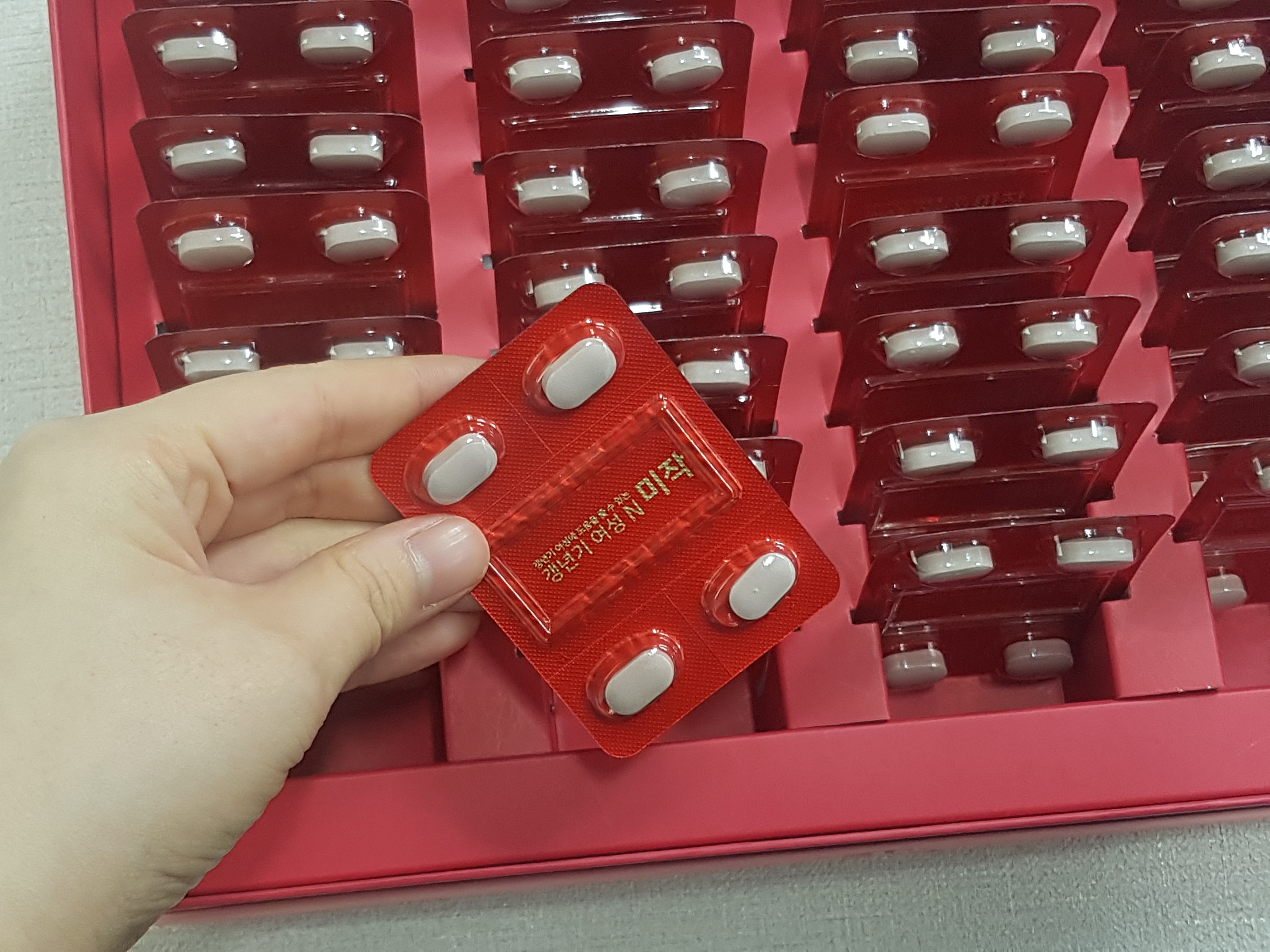 깔끔하게 포장되어 있는데 하루 2번, 한번 먹을 때 2정씩 딱 포장되어 있는 거